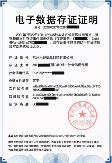 对数据生成唯一哈希值(如SHA-256),确保数据指纹不可逆、唯一性。结合非对称加密(RSA、ECC)保护存证隐私。